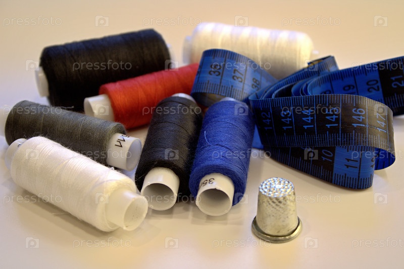 Комплект пошива: многоцветные нитки, сантиметровая лента, металлический палец