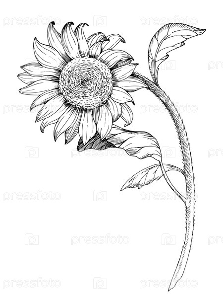 Подсолнечник.Ручная иллюстрация в стиле векторного чернил.Для дизайна упаковки, карт, обложек, принтов, этикеток на продуктах и тканей