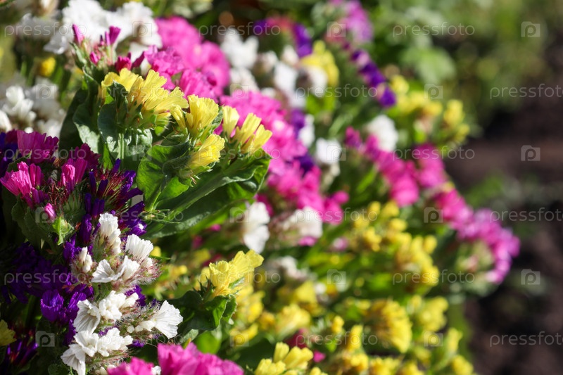 Яркие статистические данные (сухие цветы) различных цветов на размытом цветковом фоне