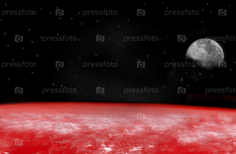 Абстрактный глянцевый футуристический космический фон с изображением Луны и части планеты Марс