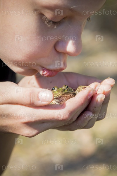 девочка целует лягушку