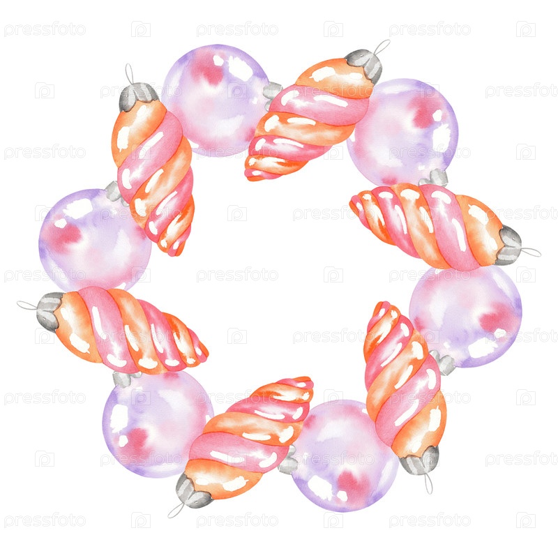 Венок рождественских игрушек для ткани, обоев, упаковочной бумаги, поздравительных открыток, дизайна, декора и иллюстрации