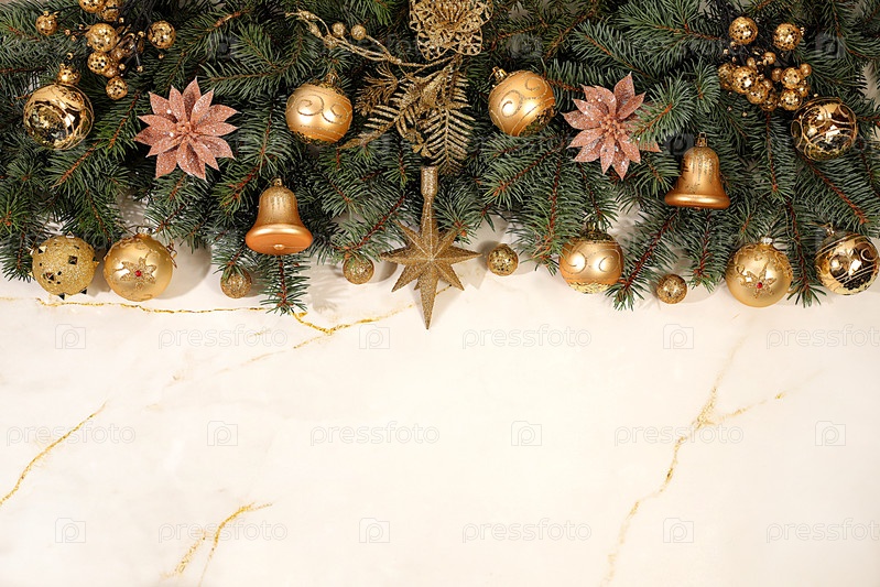 Красивый рождественский и новогодний фон с огнями, ювелирными украшениями, игрушками и ветвями пихты. праздничная зимняя открытка и баннер на экране, дизайн продукта для рекламы праздника,