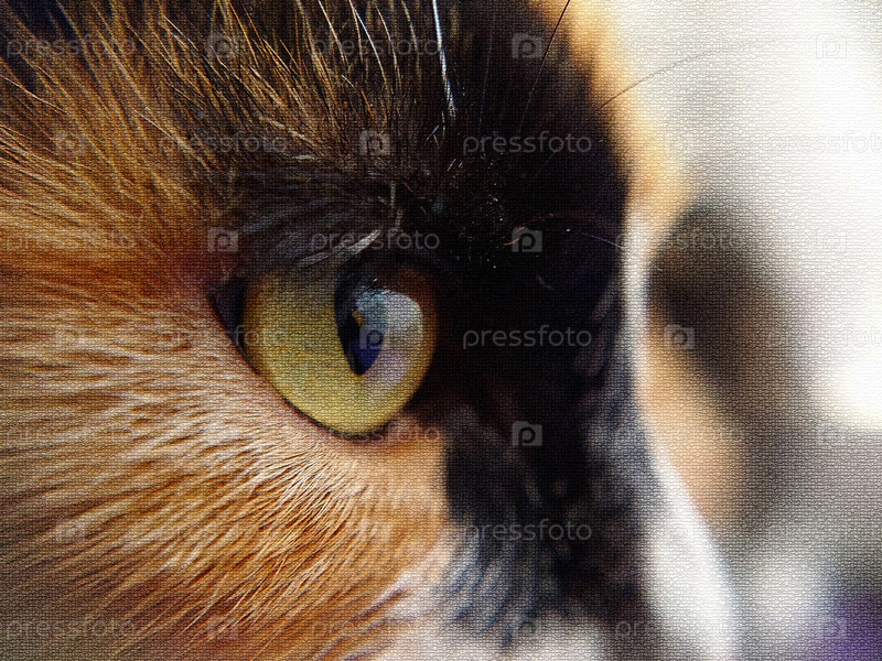 Близкий снимок кошки калико, которая пристально смотрит на него, подчеркивая его увлекательные желтые глаза и мягкое коричневое меховое покрытие