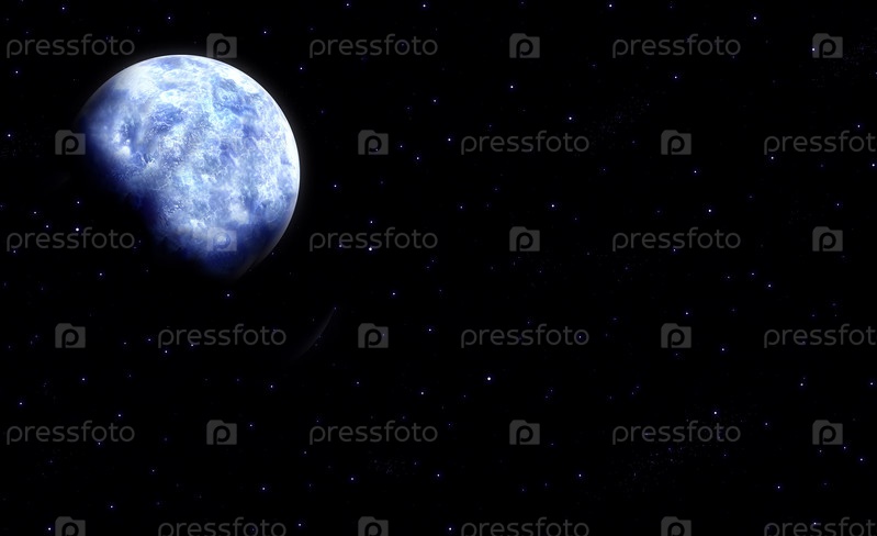 Яркая голубая луна, окруженная звездами на черном