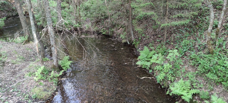 Лесной ручей в тени деревьев