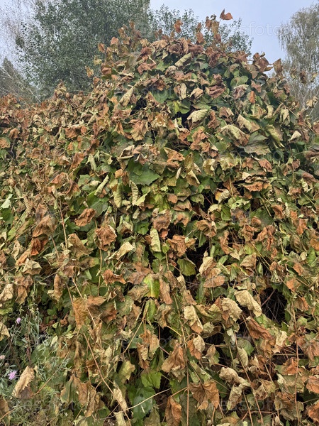 Виноградная лоза повреждена первым морозом. живые и мертвые листья винограда