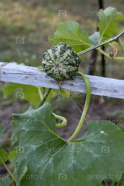 Декоративная тыква, растущая в поднятой садовой кровать