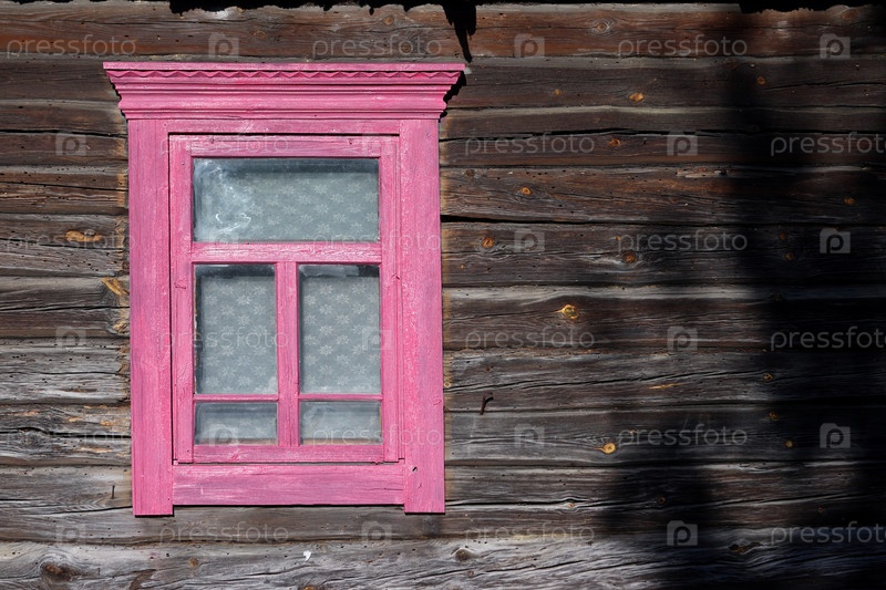 Винтажная деревянная оконная рама в старой бревенчатой стене