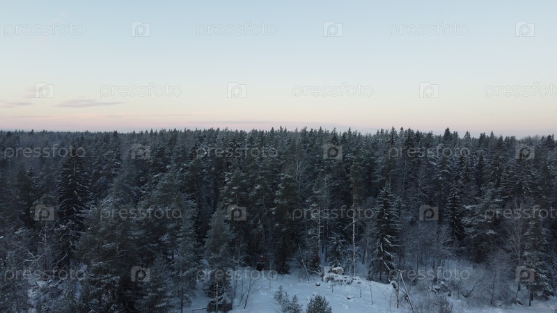 Зимний хвойный лес на закате