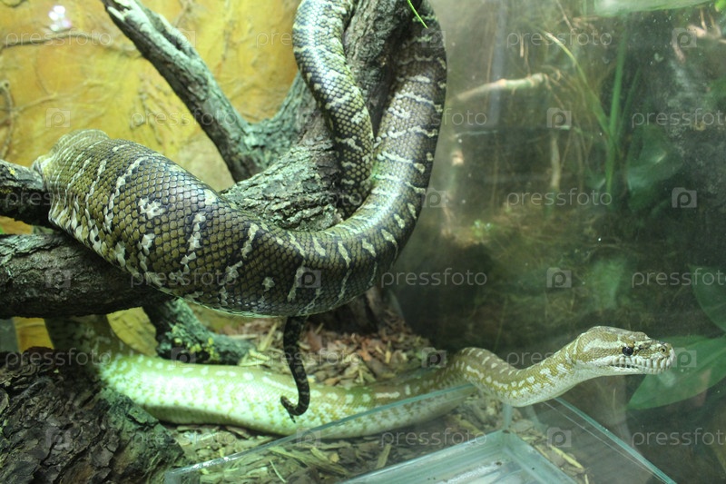 Две змеи в террариумном аквариуме