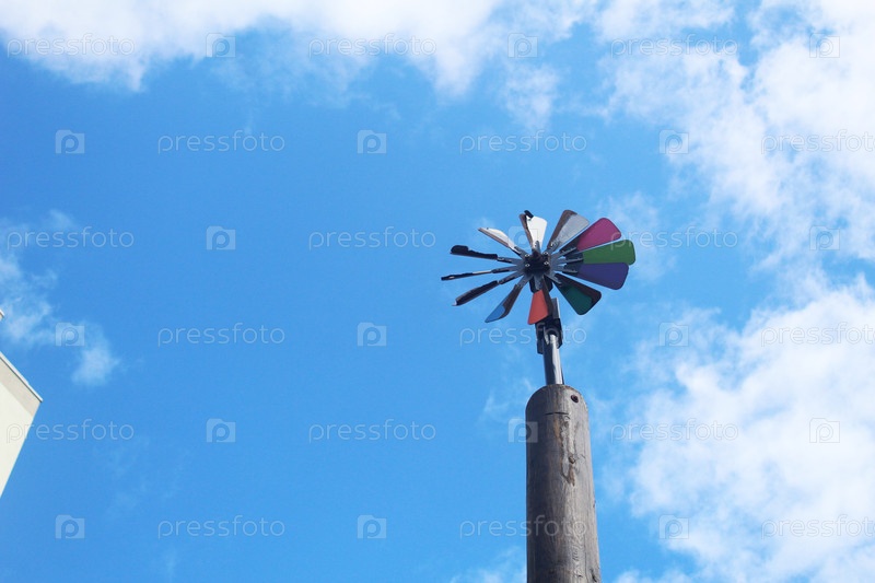 Индикатор направления ветра ветряной мельницы на фоне синего неба