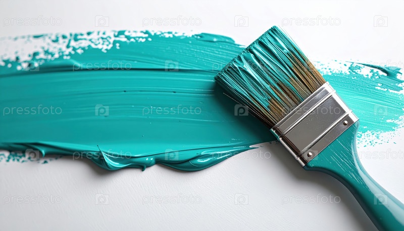 Красочная кисть распространяет яркую краску на холст, символизируя новое начало, дизайнерское творчество и преобразующую силу цвета в искусстве и декоре