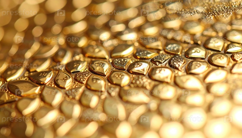 Макроснимка золотой чешуйчатого узора, вызывающего темы процветания, эксклюзивности успеха и роскошного стиля, подходящего для финансирования ювелирных украшений моды и праздничных праздничных изображений