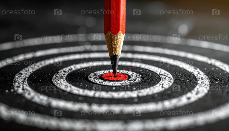 Карандаш наносит удар по цели как метафора для точного определения успеха стратегического планирования и достижений в образовательной карьере или спорте