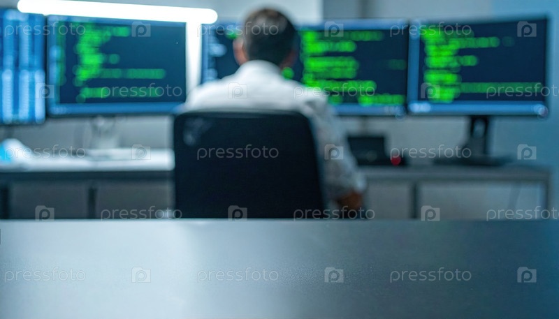 Профессиональные данные мониторинга кибербезопасности на нескольких экранах в офисной комнате управления, символизирующие цифровую защиту, защита и информационную безопасность в корпоративном технологическом пространстве