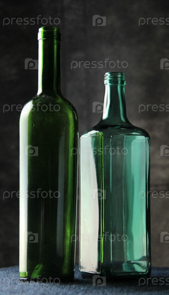 Две зеленые стеклянные бутылки