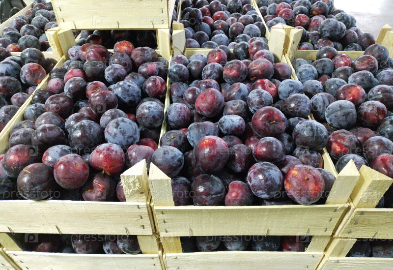 Сливочные сливы в деревянных коробках. Чистка слив. Хранение фруктов на складе перед продажей