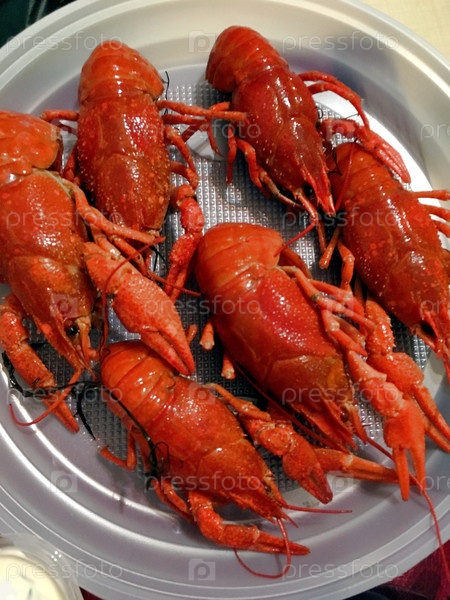 Приготовленные крабы на пластиковой тарелке