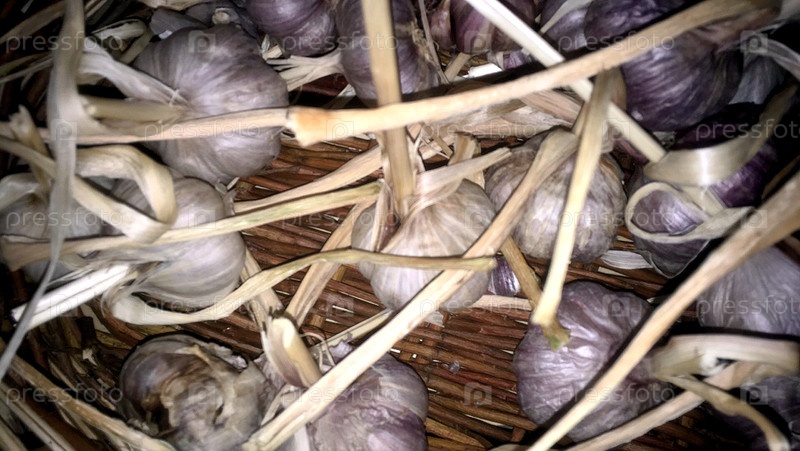Свежий чеснок сушеный в корзине