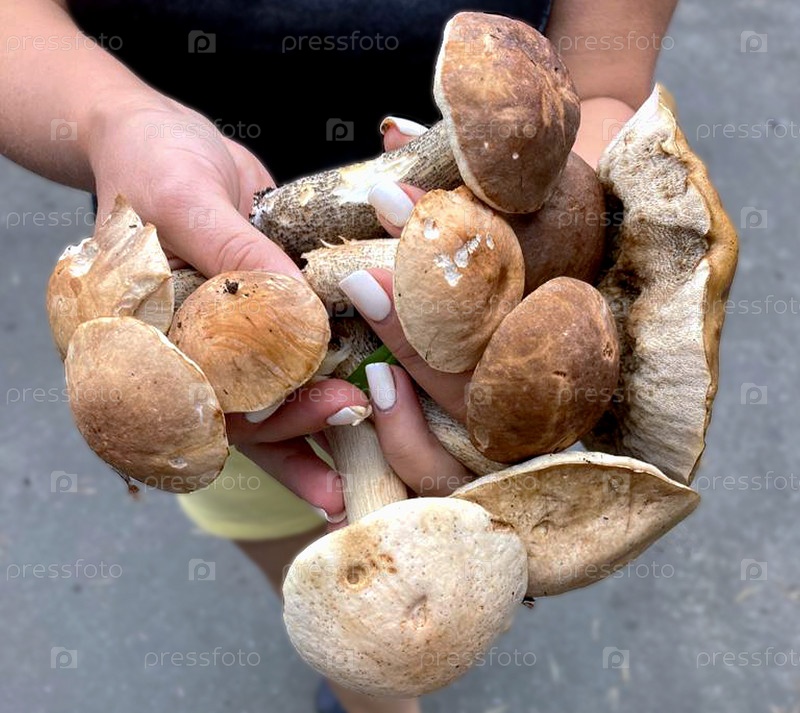 Свежесобранные лесные грибы в руках женщины