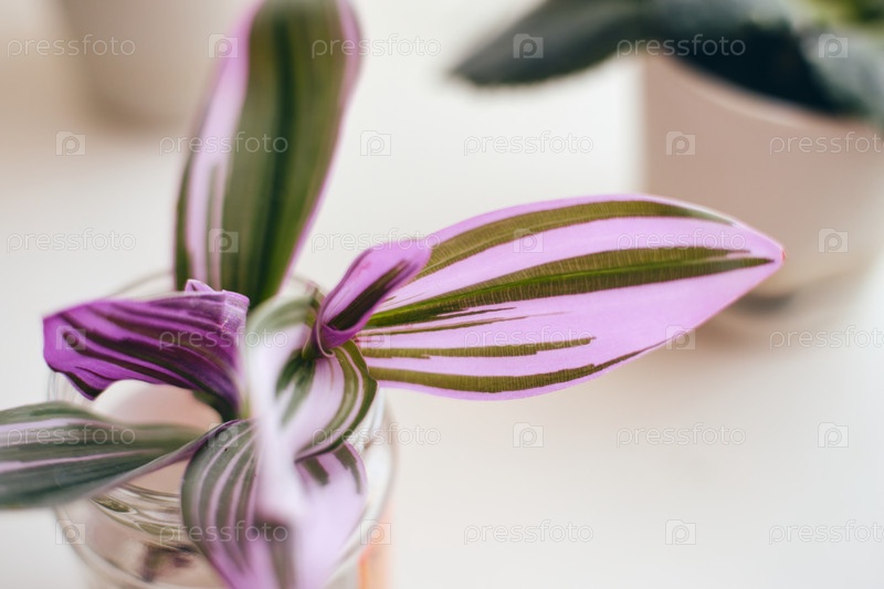 Близкий план полосатых зеленых и фиолетовых листьев Tradescantia zebrina
