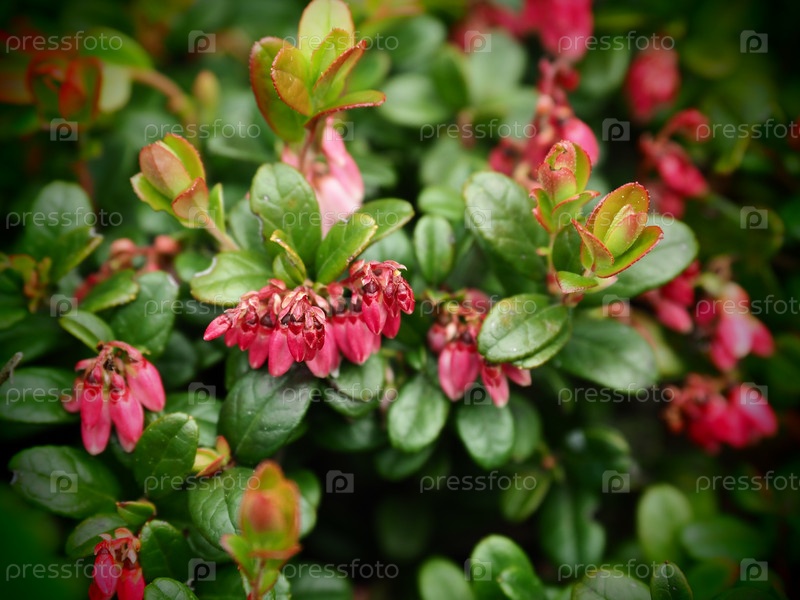 Цветение дикой лингонберри (Vaccinium vitis-idaea).Красивые крошечные белые цветы лингунберри в ближайшем плане.Сахалин.Сахалин