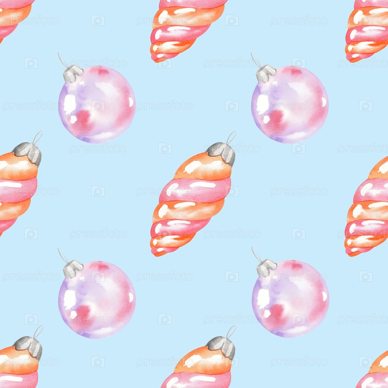Бесшовный рисунок рождественской елки, игрушечный стеклянный шар и выпуклости на синем фоне. для ткани, обоев, упаковочной бумаги, поздравительных открыток, дизайна, декора и иллюстрации