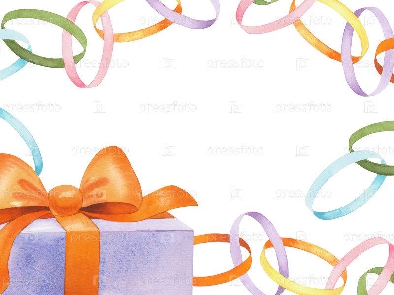 Реставрационная рама бумажной гирлянды и подарочной коробки. Иллюстрация акварели. Для ткани, обоев, упаковочной бумаги, поздравительных открыток, дизайна, декора и иллюстрации