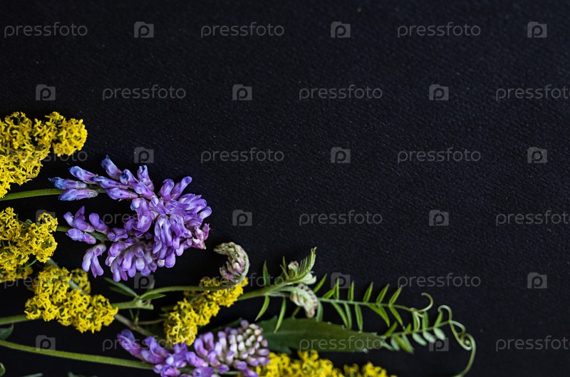 Ярко-фиолетовые и желтые дикие цветы на тёмном фоне создают потрясающий визуальный контраст
