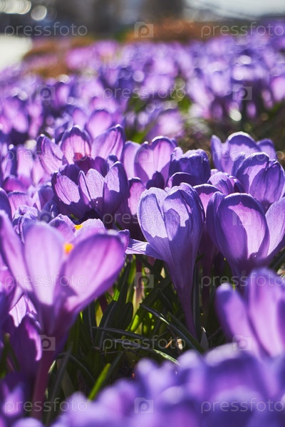 Весеннее клумба из фиолетовых цветов крокуса