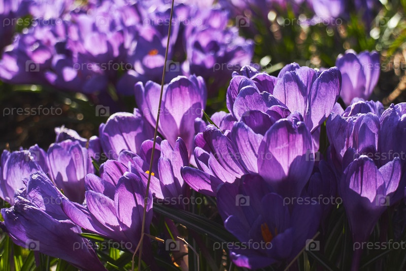 Весеннее клумба из фиолетовых цветов крокуса