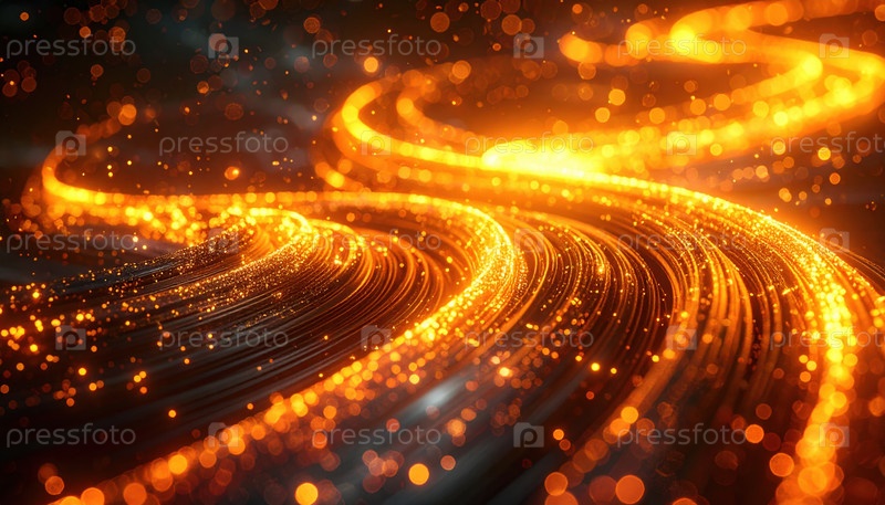 Абстрактные светящиеся оранжевые световые трассы, символизирующие скорость, технологии, инновации, цифровую энергию и футуристические сетевые соединения на современном фоне
