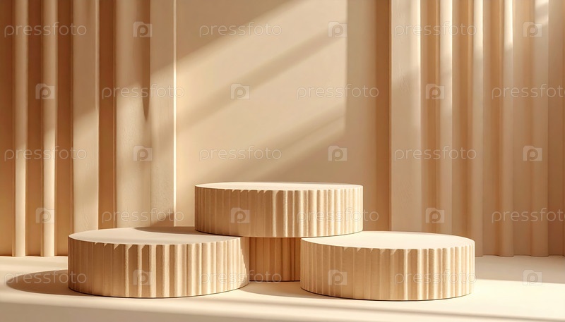 Минималистический подиумный дисплей с мягкими тенями, символизирующий современный дизайн, тенденцию презентации продукта и эстетическое равновесие в архитектуре и креативных отраслях