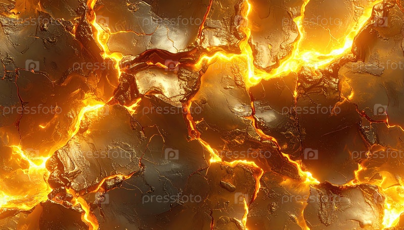 Расплавленные лавовые трещины, сияющие интенсивной огненной энергией, представляют собой сырую энергию земли, извержение вулкана, осознание бедствий и концепцию драматического природного явления