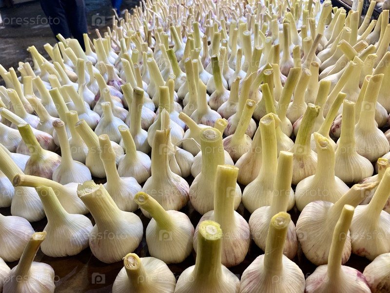 Чеснок на рынке за стойкой
