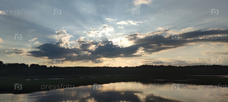 Закат солнца над озером