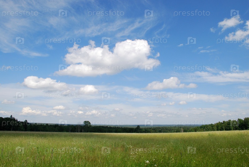 Зеленое поле под облаками А