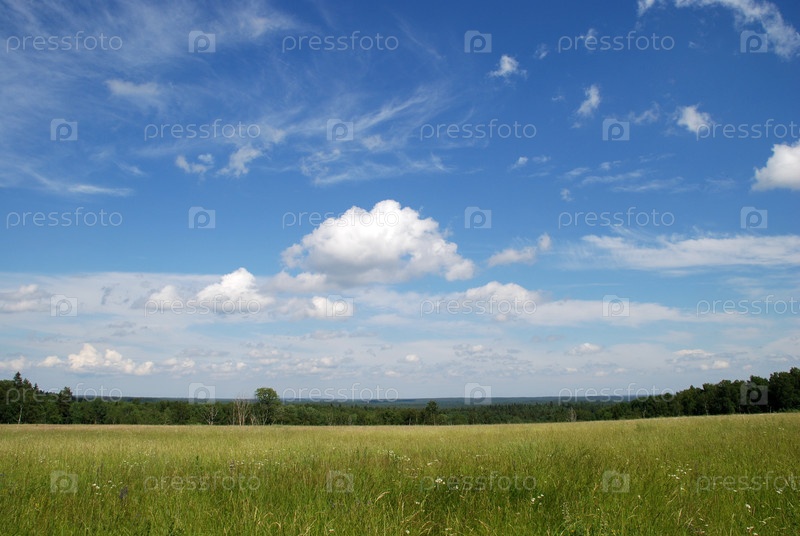 Зеленое поле под облаками А
