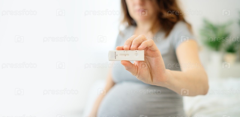 Беременная женщина проверяет результаты ПЦР-теста