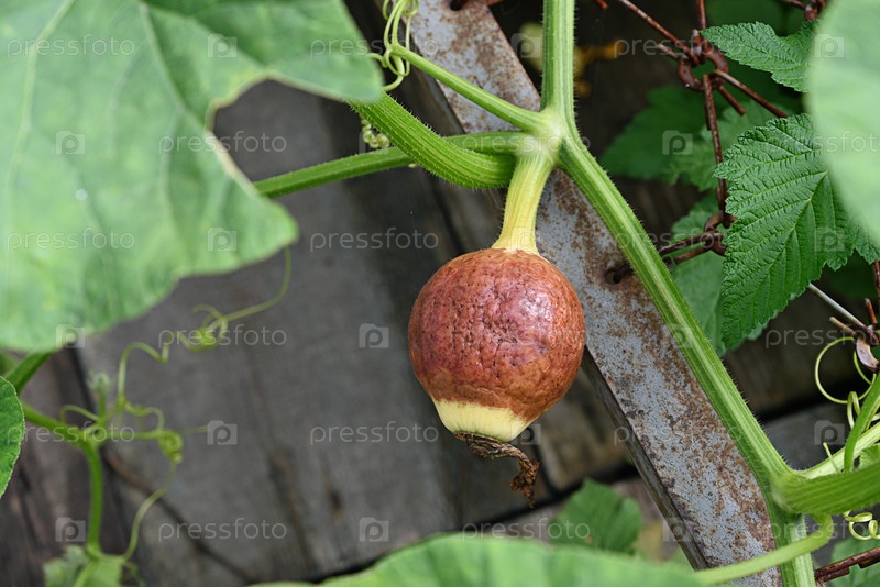 Молодые плоды кабачков поражены гниением, которое проявляется в виде коричневых пятен. в саду поздним летом на селе