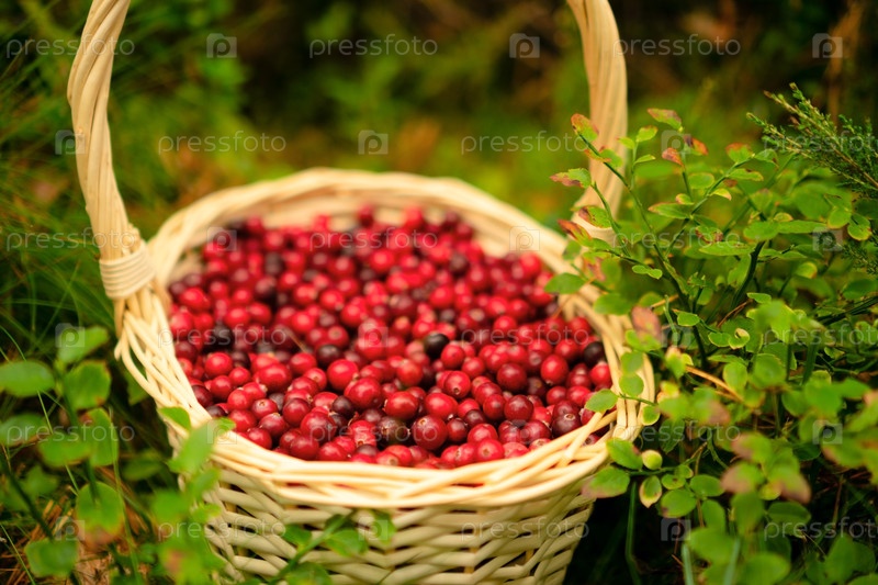 Полная корзина клюквенных в сказочном осеннем лесу