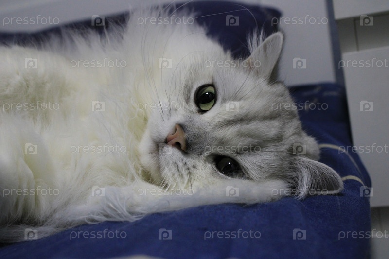 Спящий белый кот