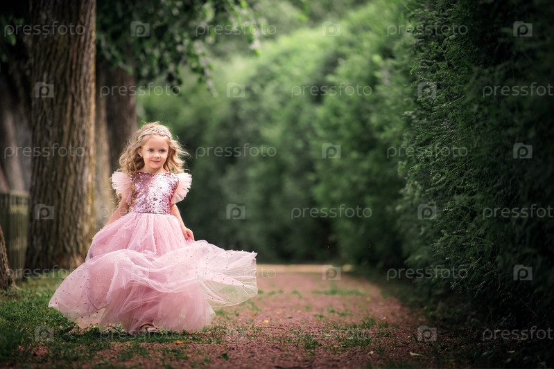 маленькая девочка в розовом платье играет снаружи с счастливой улыбкой концепция детских воспоминаний мечта принцессы стала реальностью