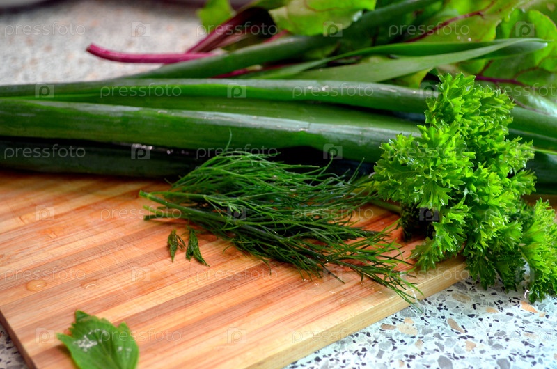 Различные зеленые на столе. зелёный лук, уксус, пеллетки, сельдерей, хрящ