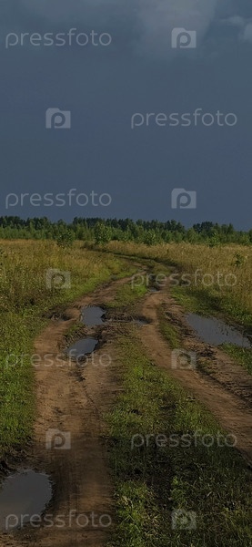 Полевая дорога под штормовым облаком