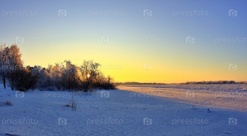 Рассвет над зимней рекой Иртыш