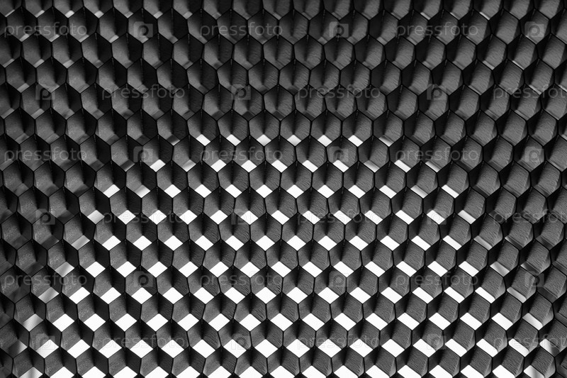 Абстрактный серый фон с клеточными ячейками, подсветка с полукругом в центре. фоторефлектор Honeycomb
