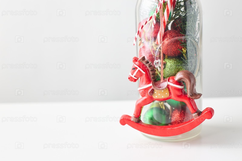 Рождественские аранжировки в вазе, букет веток елей и декоративные рождественские украшения