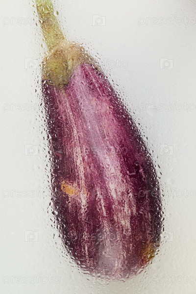 Фиолетовый баклажан с капельками воды на стекле, абстрактная пищевая фотография